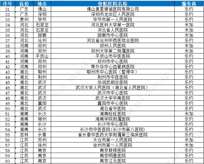 截至11月,新华保险快赔服务已覆盖全国23个省市的180家医院,三级及以上级别医院占90%,为客户锁定身边的健康守护站。其中包括北京大学第三医院、浙江大学医学院附属第二医院、西安交通大学第二附属医院、湖北省人民医院、郑州中心医院等100多家三级甲等综合性大医院。未来新华保险将持续拓宽快赔服务医院覆盖范围,让极速高效省心的快赔服务惠及更多客户。这份清单请查收,您可查询距离最近、最方便的快赔医院。