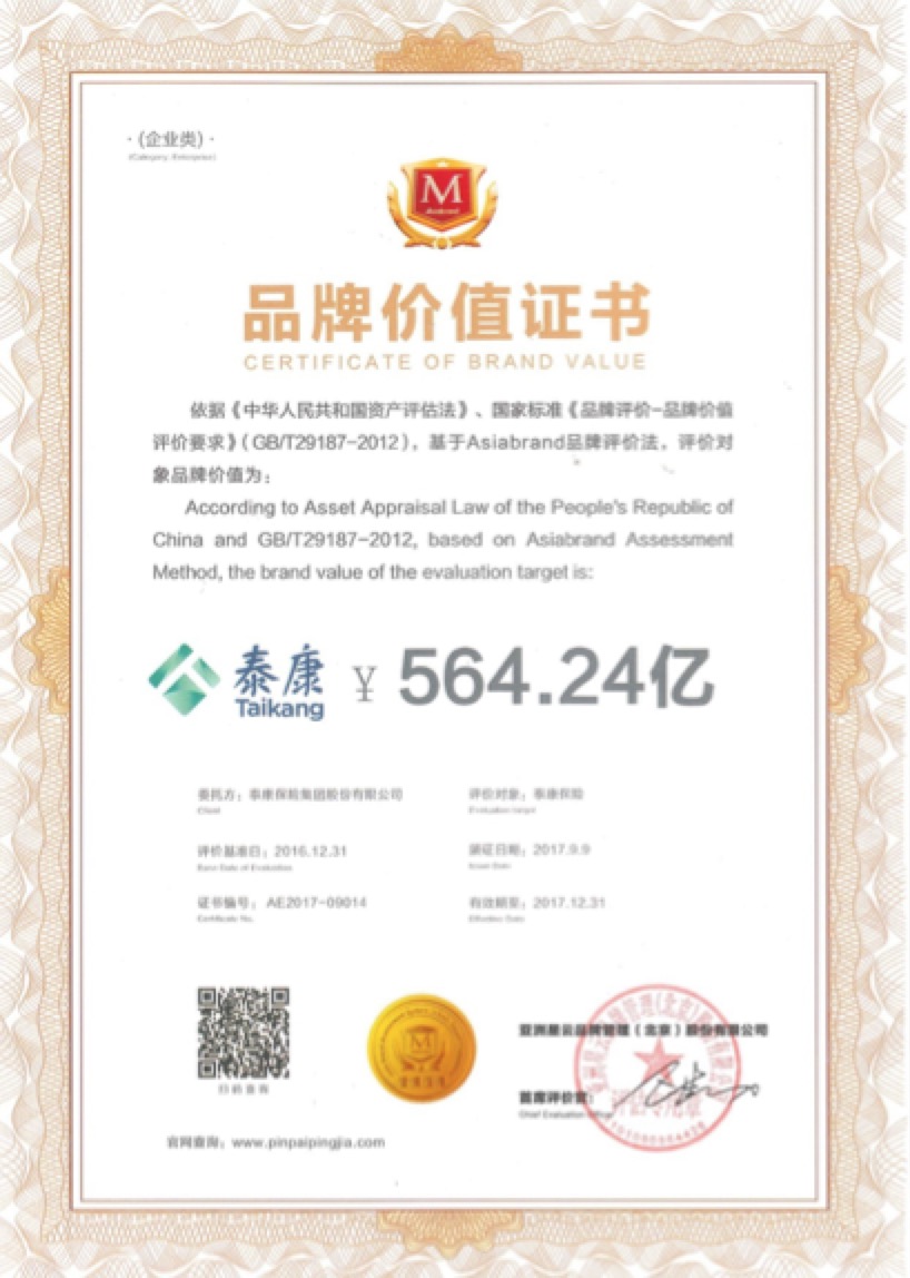 2016年,国务院办公厅发布第44号文件《关于发挥品牌引领作用推动供需结构升级的意见》;2017年,国务院办公厅批复同意自2017年起,将每年5月10日设立为“中国品牌日”;品牌建设上升为国家战略。一个国家、一个民族软实力提升、价值观输出的过程,必然伴随一大批自主品牌影响力的全球化,在国家“走出去”“一带一路”战略的大背景下,泰康保险集团已大跨步迈出国际化步伐,走出中国大陆,走向香港、英国、美国……泰康品牌也定将持续创新壮大,跻身世界著名品牌之列。