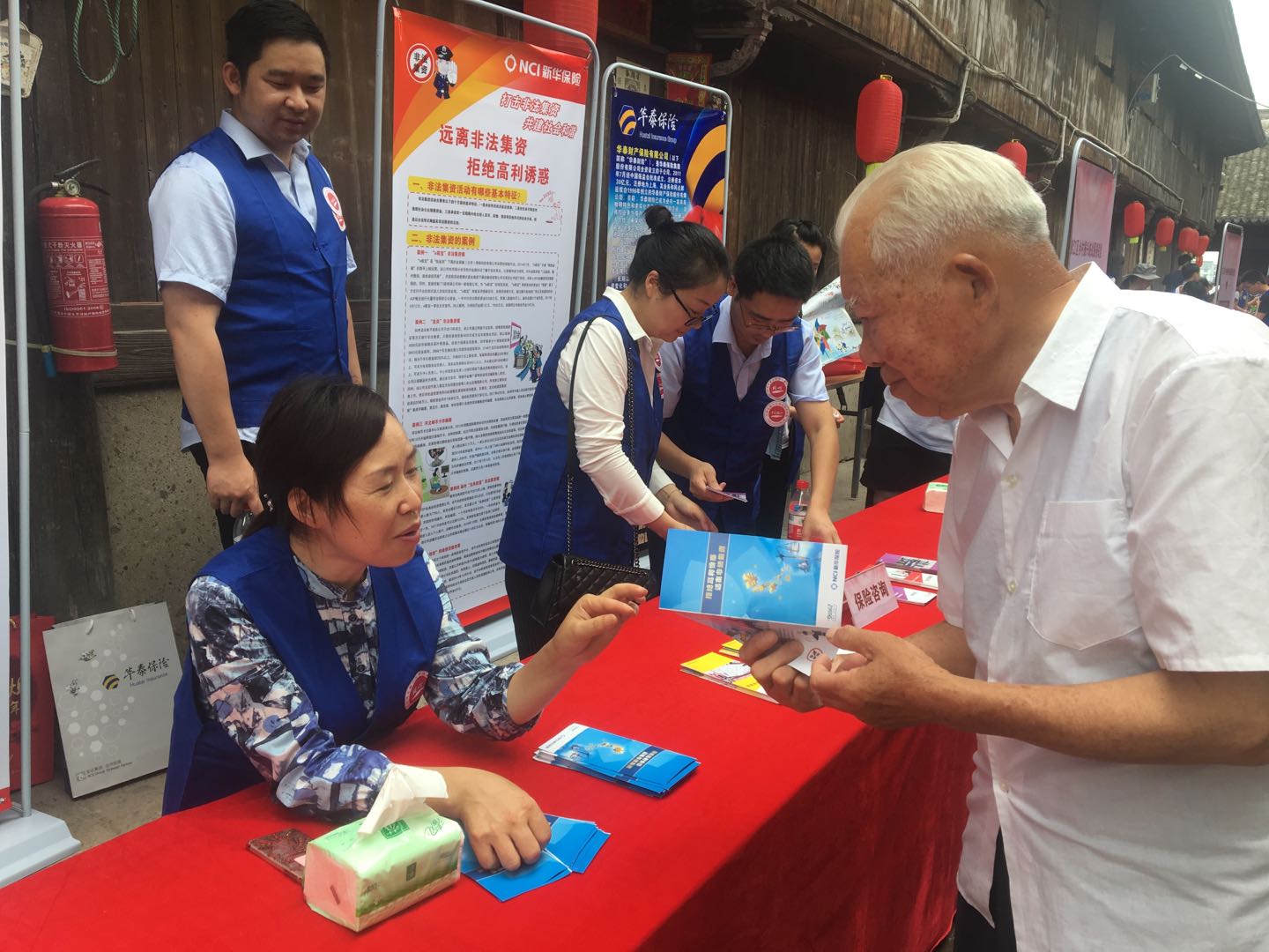 5月26日,新华保险台州中支组织内外勤人员参加椒江区统战部主办的"不忘乡贤情 共圆乡村梦——大型社会服务活动进乡村"活动,为椒江横河陈村村民提供保险咨询答疑服务,同时开展防范非法集资宣传。