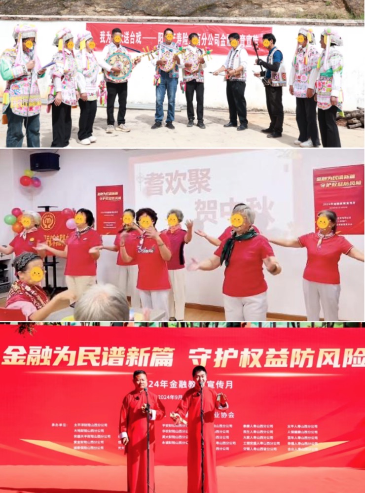 阳光人寿云南、深圳、山西等分公司及宁波中支充分发挥地缘优势,以当地村民喜闻乐见的歌曲、文艺汇演等形式,将金融基础知识、政策法规、电信诈骗、反诈防非等金融教育宣传内容与载歌载舞、欢声笑语的氛围深度融合,通过寓教于乐的形式引导当地居民加深对保护个人信息、维护自身权益的认识,进一步提高警惕意识、避免盲目跟风和冲动交易,筑牢自我保护屏障。