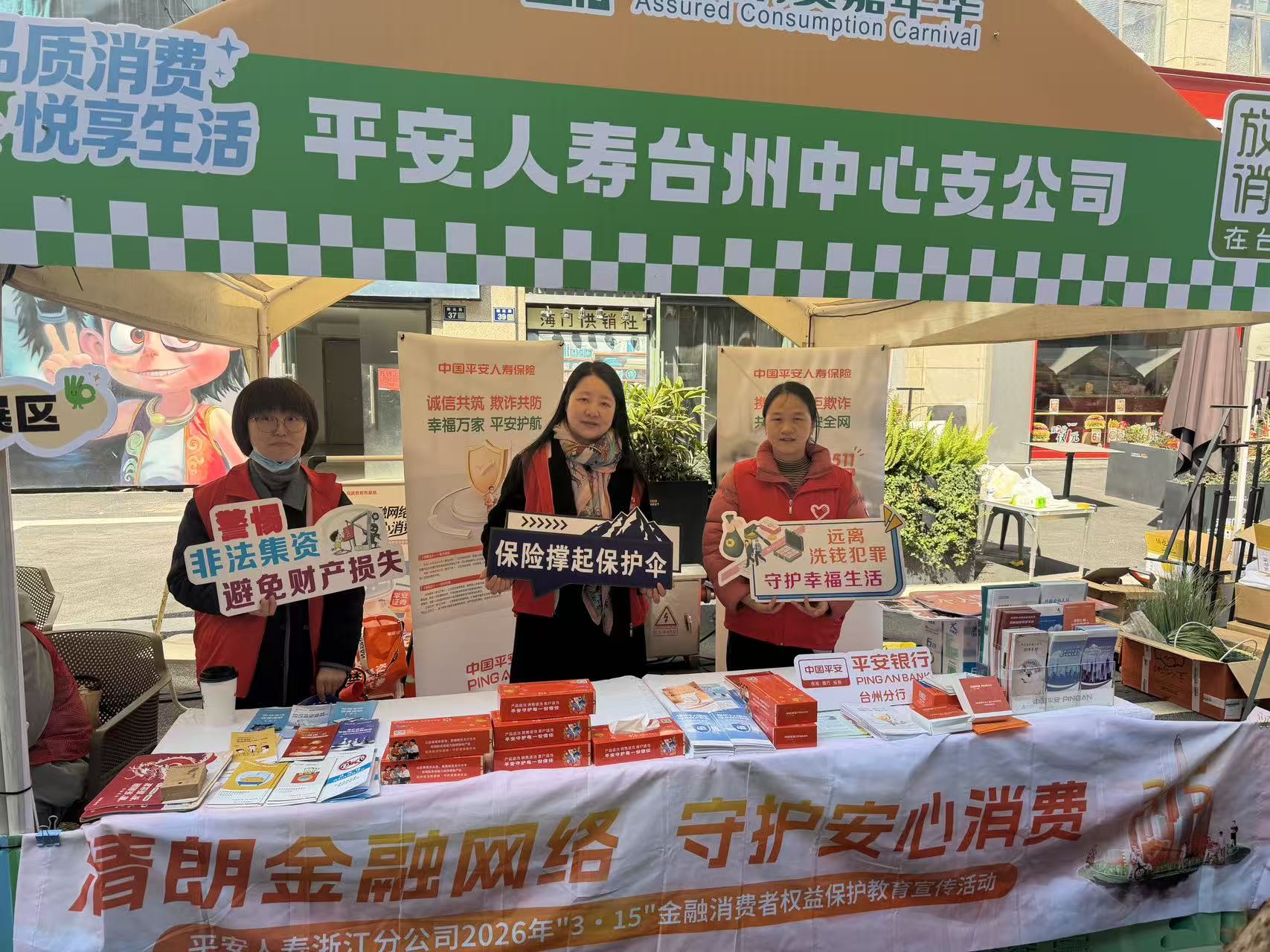 平安人寿台州中心支公司积极响应金融消费者权益保护号召,围绕“清朗金融网络 守护安心消费”主题,创新宣教形式,3月13日先后走进商务社区及台州市“3·15放心消费嘉年华”活动现场,通过“知识宣讲+趣味互动+公益赠险”多维举措,为老年人及新市民群体筑牢金融安全防线。